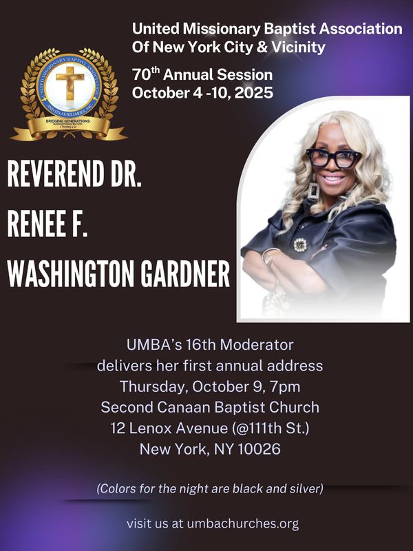 In 2004, the Rev. Dr. Renee F. Washington Gardner was elected Senior Pastor of the Memorial Baptist in Harlem, and in December 2024, she became the 16th Moderator of the United Missionary Baptist Association of New York City & Vicinity, the first woman elected to both posts. Pastor Renee, as she is lovingly known, is a trailblazing woman of many “firsts.” In addition to being the first woman to lead Memorial in its then-69-year history, and UMBA in its 70-year history, Rev. Renee was the Baptist woman in NYC to succeed her husband as Pastor; the first woman to be elected as Senior Pastor of an established Baptist Church in Harlem, and the first woman to serve simultaneously as Pastor of one Harlem congregation and First Lady of another, as she is married to the Rev. Dr. Sean P. Gardner, Sr. of the East Ward Missionary Baptist Church.